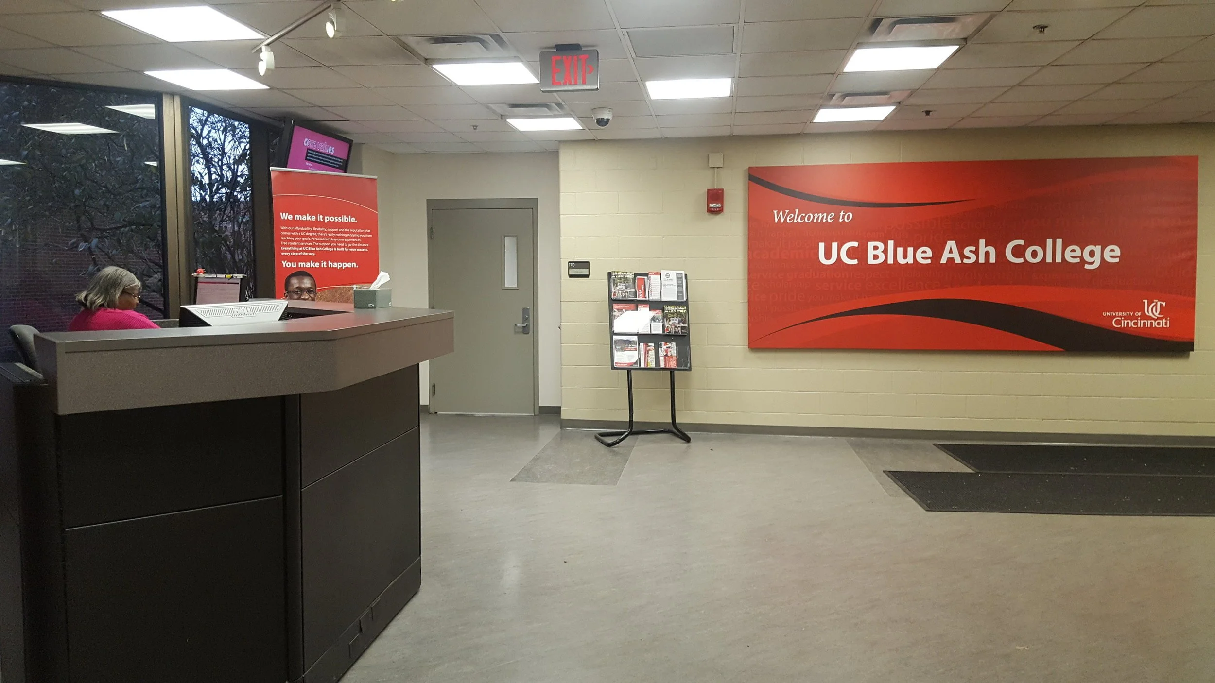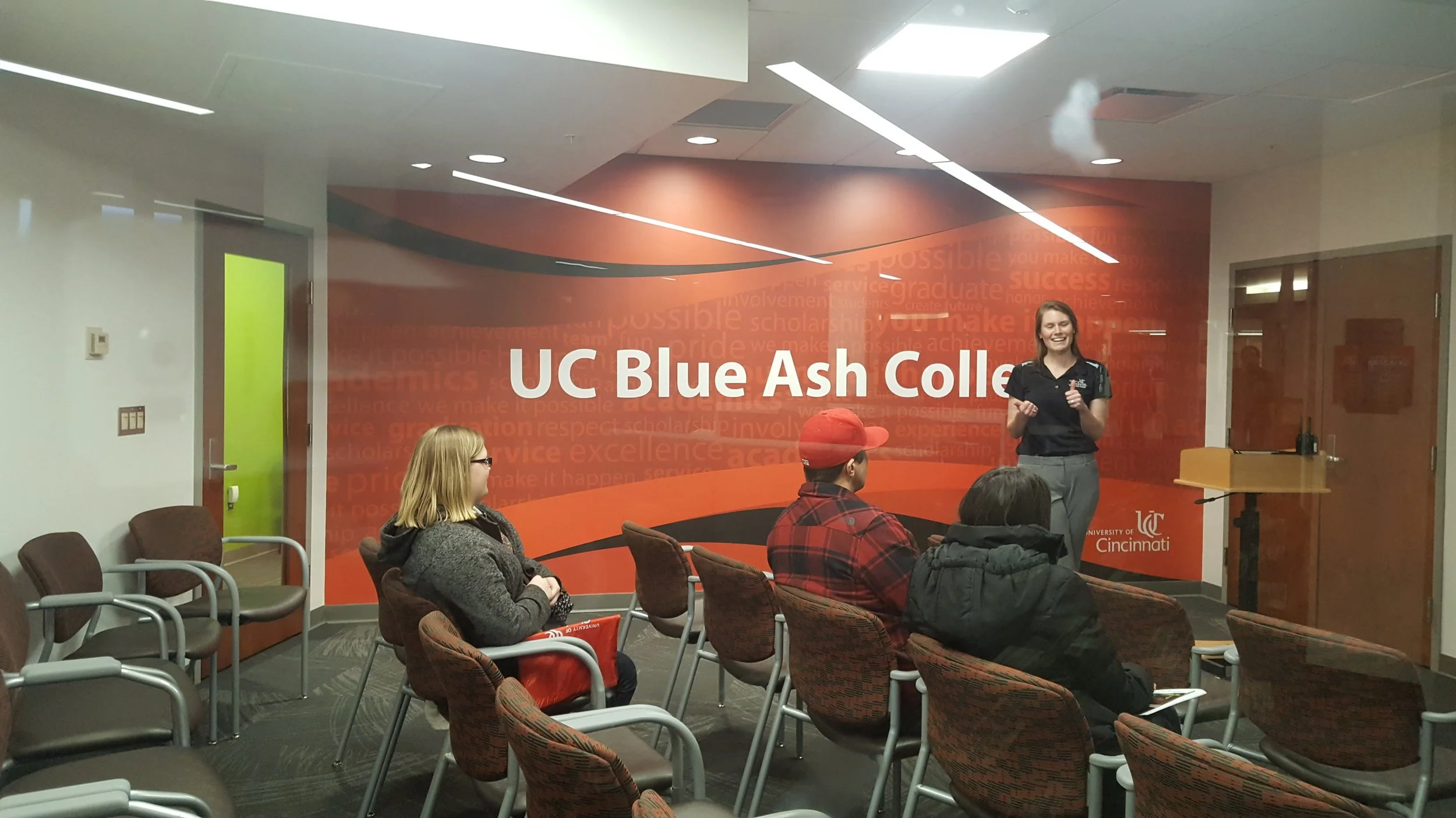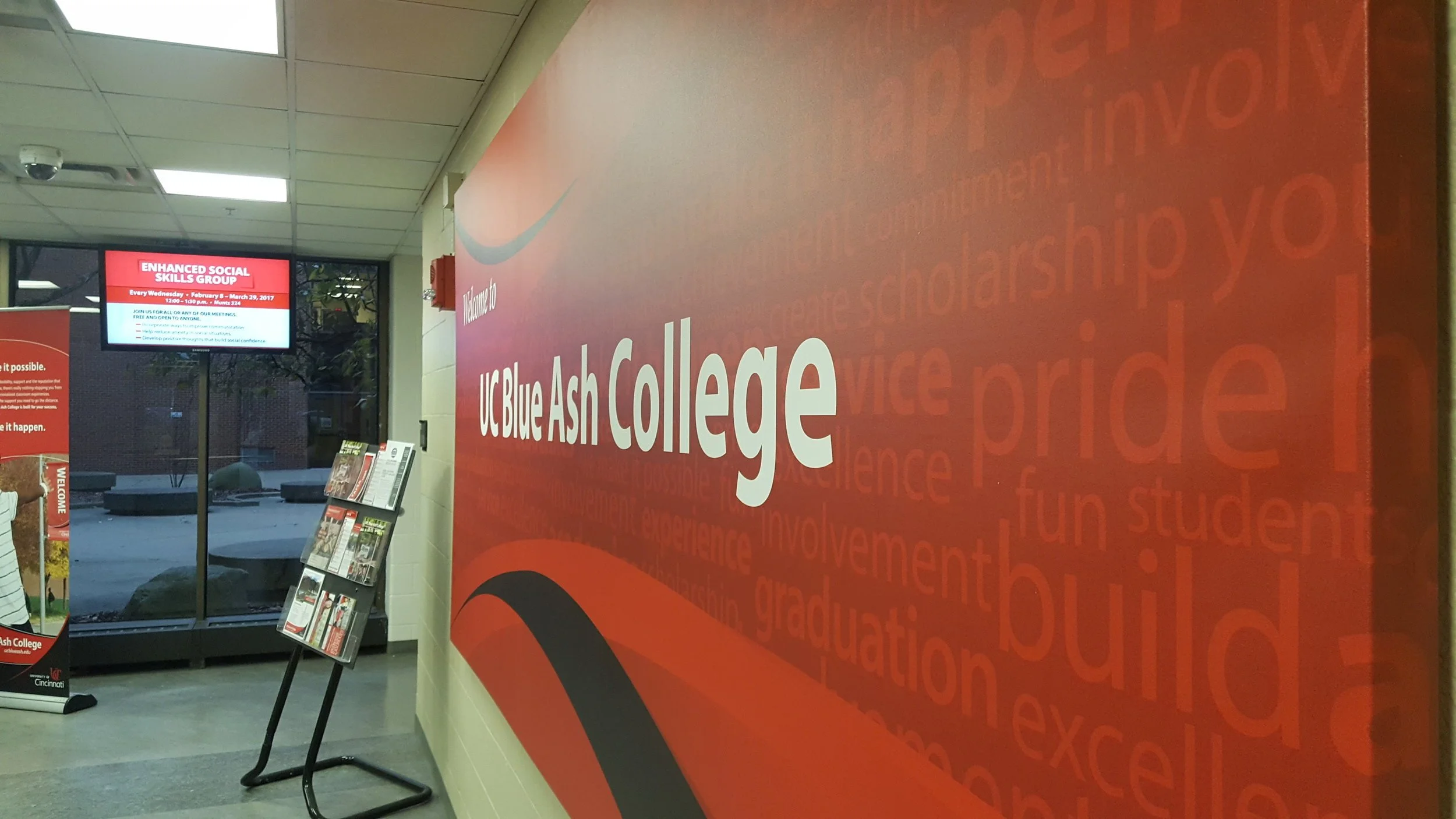 University of Cincinnati Blue Ash (UCBA) was going through an expansion and wanted to open it's admission office to the students and offer more services. As a result of newer office space, they needed environmental graphic designs that resembled their mission statement and communicates as a premium location for excellent education.